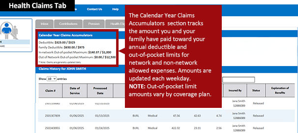 Items marked with an asterisk (*) will appear only if applicable. To view the new information, go to your Health Eligibility and Health Claims tabs as shown below: