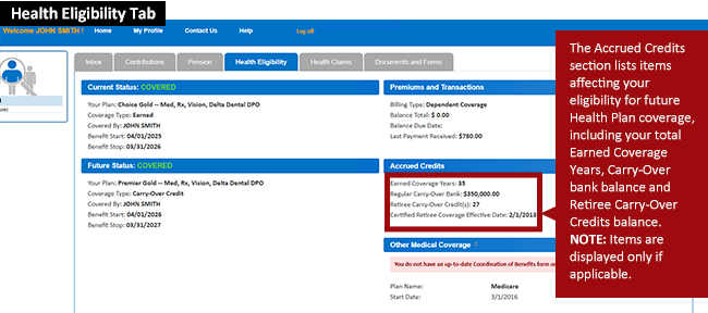 - Total accrued Earned Coverage Years, a key determinant of your eligibility for Extended Self-Pay and Certified Retiree coverage*