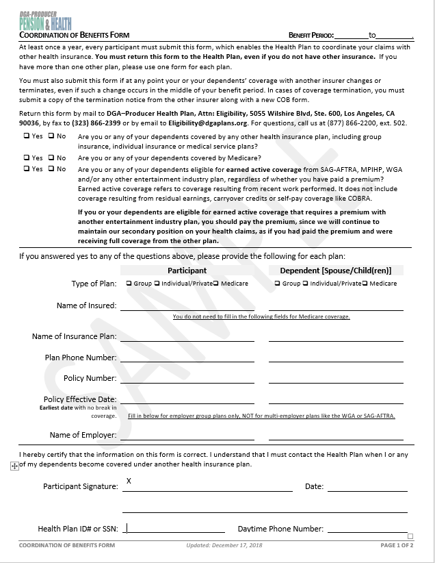 A completed COB form can be emailed to eligibility@dgaplans.org, mailed to the address on the form, or faxed to (323) 866-2399.