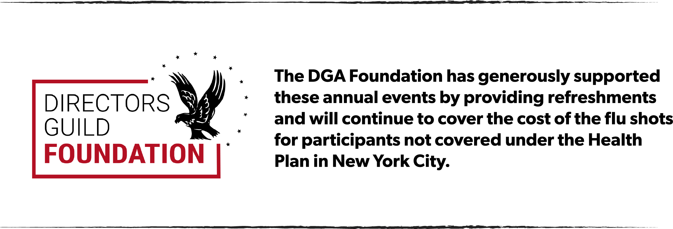 - The DGA Foundation has generously supported these annual events and will continue to cover the cost of the flu shots for members not covered under the Health Plan.