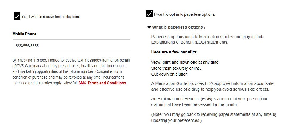 5. You can also choose to receive text notifications instead of email, and choose paperless options.