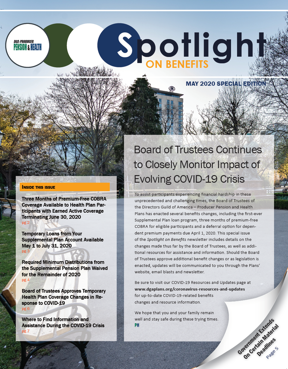 The May 2020 Special Edition Spotlight on Benefits newsletter is now available. This issue provides updates on the temporary benefits changes enacted by the Board of Trustees in response to the COVID-19 pandemic and provides additional information of importance during these challenging times.