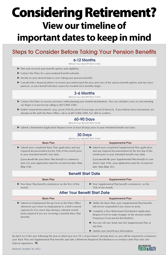 There are other collective bargaining agreements with different employer pension contribution rates. For more information on Collective Bargaining Agreements, visit the Directors Guild of America website at dga.org/contracts.