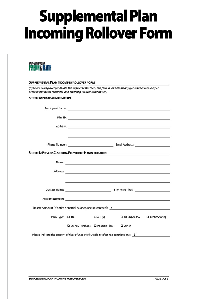 You can send us a completed Supplemental Plan Incoming Rollover Form. If you have any questions or need assistance completing the form, contact the Pension Department at (323) 866-2200, ext. 404 or toll-free at (877) 866-2200, ext. 404.