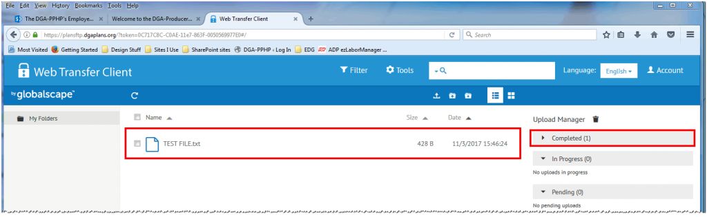- Once your credentials are validated, the secure gateway/tunnel is activated, and you will be automatically redirected to the Web Transfer Client page.