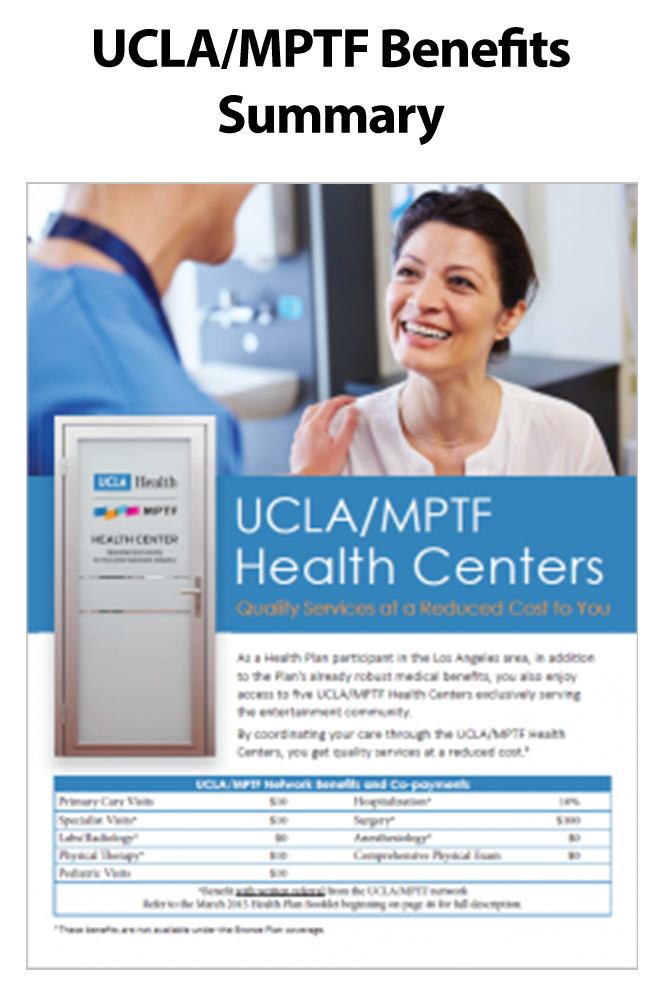 If you are in the Los Angeles area, you may also enjoy access to five health centers, operated by UCLA Health and the Entertainment Industry Medical Group (EIMG). These clinics provide health services exclusively to the entertainment industry community. Regardless of which center you visit, you will receive quality care from a dedicated team of physicians, nurses, and practitioners. Click the link below each center for: